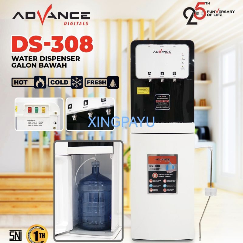 [Star] Dispenser Galon Bawah Advance Ds 308 3 Keran / Wdp 311 Pipa Stainless Steel Anti Karat Dispener Panas Dingin Es