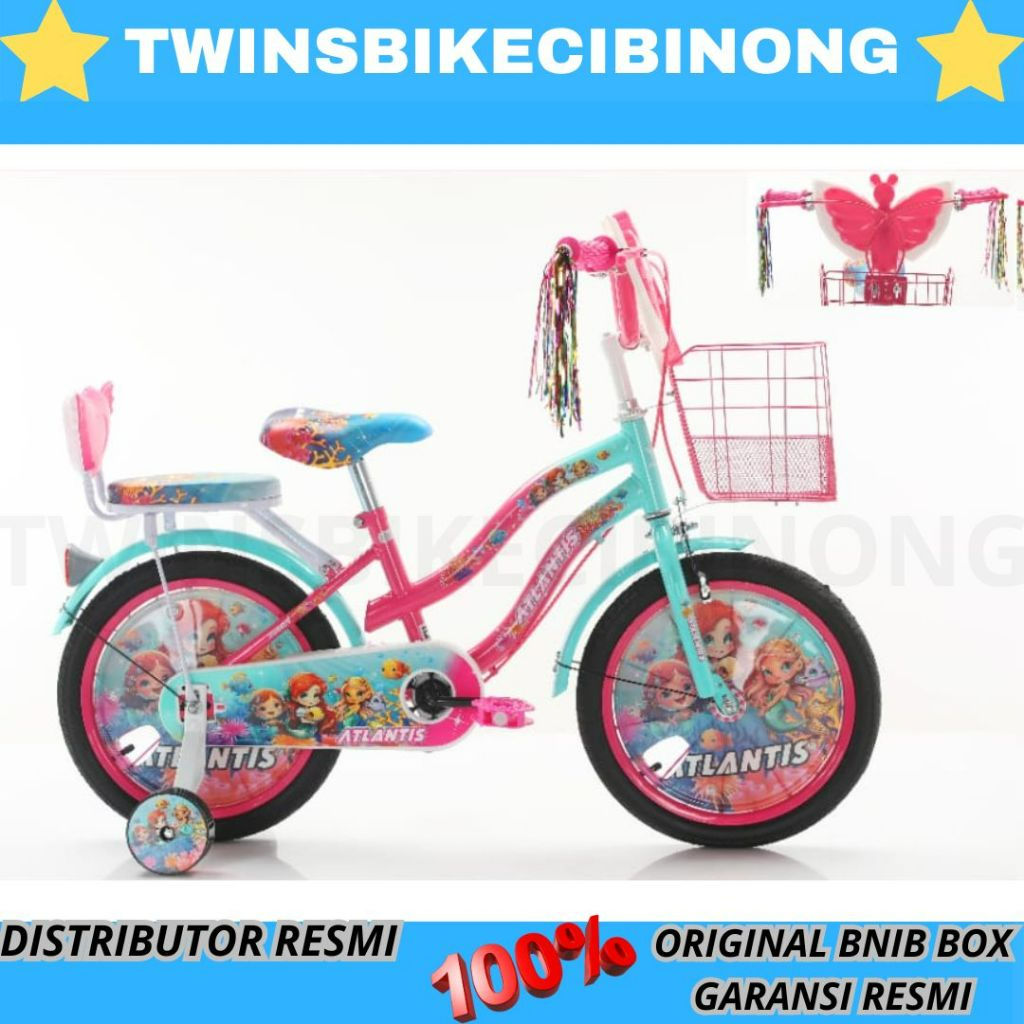 SEPEDA ANAK PEREMPUAN 12 16 18 INCH MINI CENTRUM ATLANTIS BERKUALITAS KERANJANG BONCENG RODA TIGA KESEIMBANGAN TERMURAH