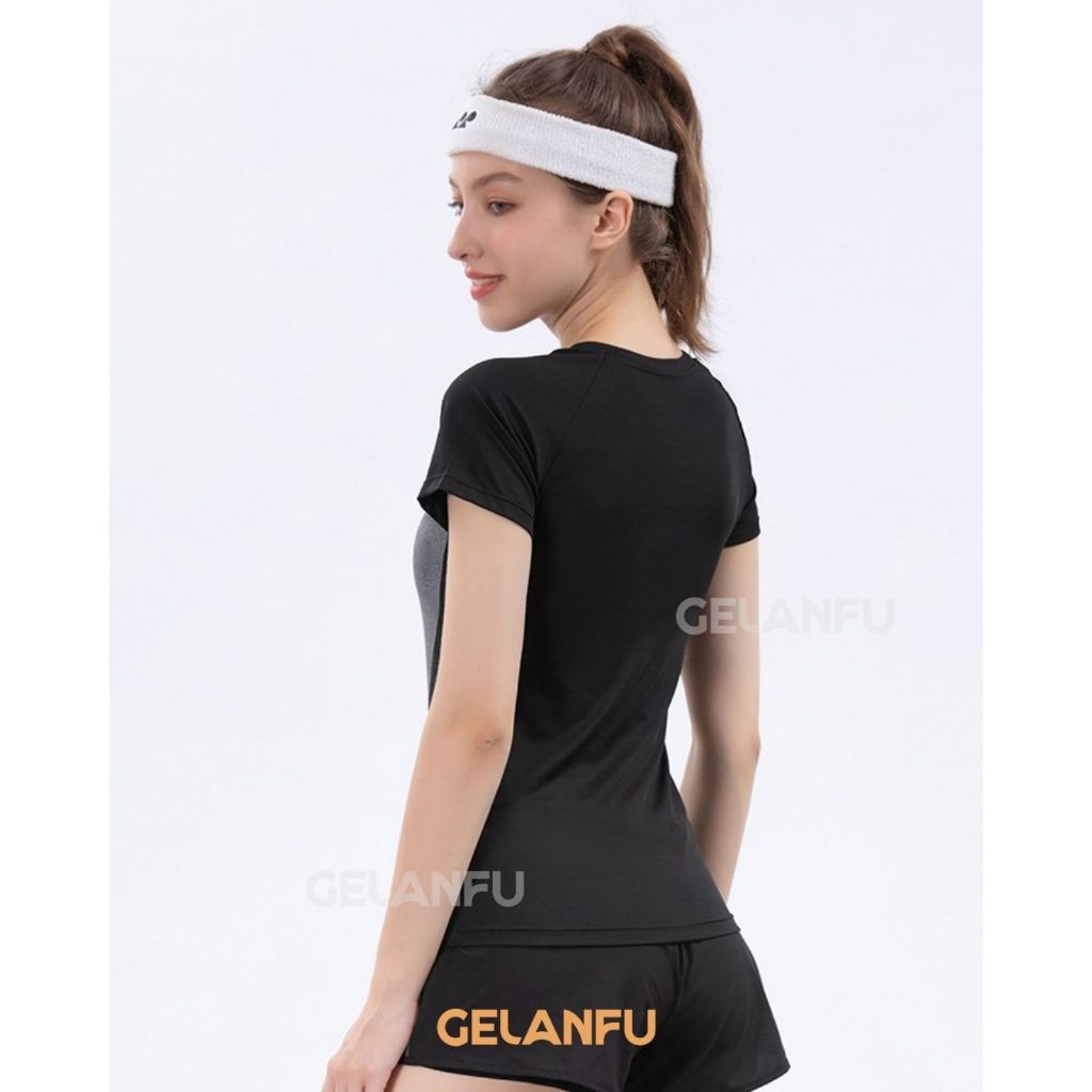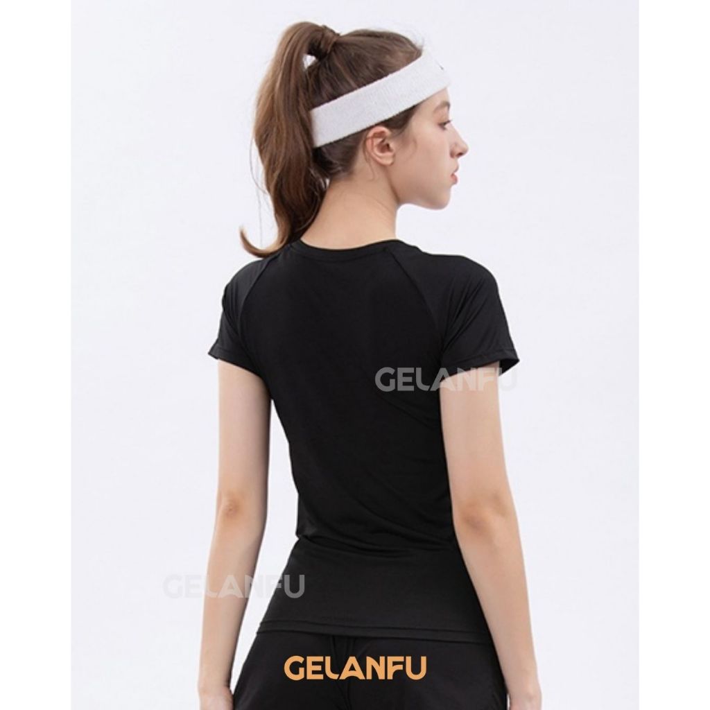 Kaos Baju Olahraga Fitness Basket Badminton Running Sportwear Cewek Wanita Black Yoga Pilates