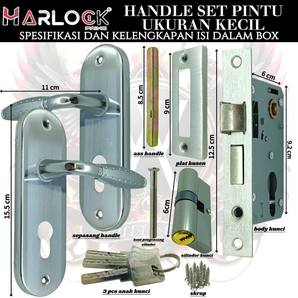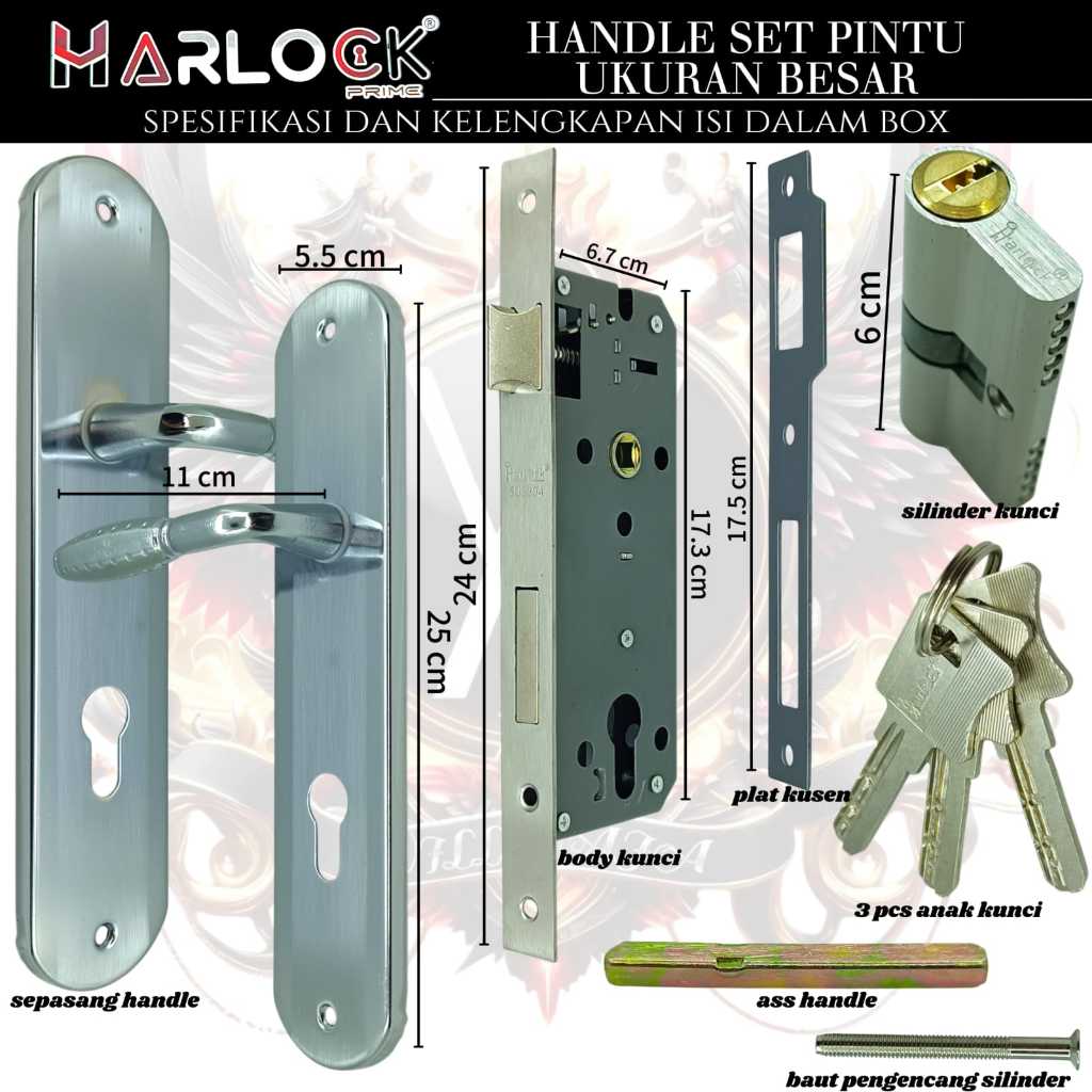 HARLOCK kunci pintu kecil / kunci pintu tanggung / kunci pintu besar handle pintu 1 set lengkap