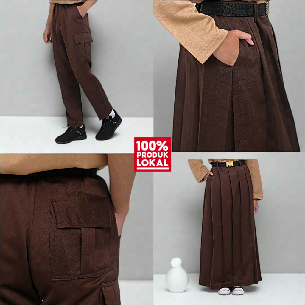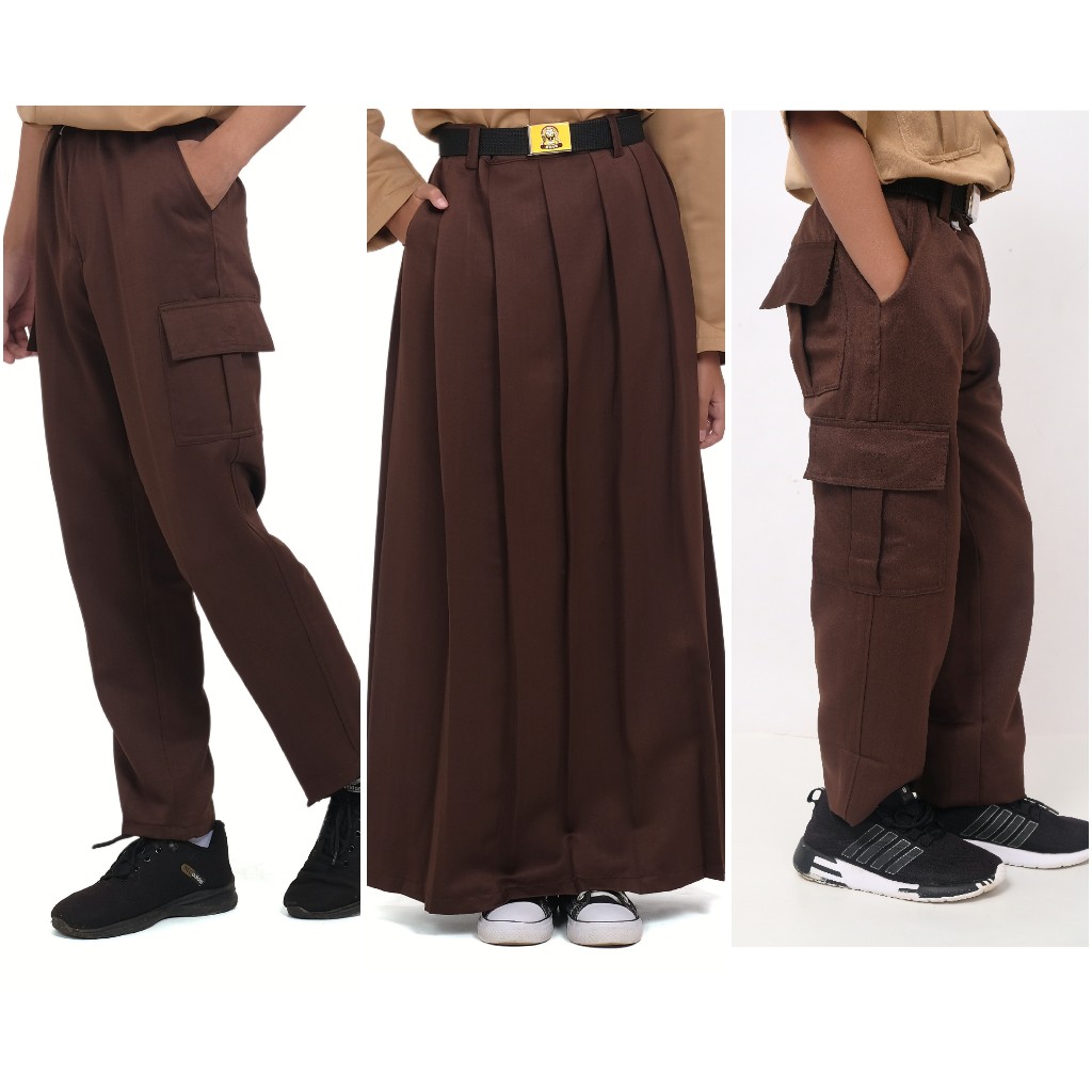 SERAGAM PRAMUKA CELANA KARGO SD SMP SMA MI MTs MA WARNA COKLAT TUA BAHAN PREMIUM TEBAL HALUS NYAMAN