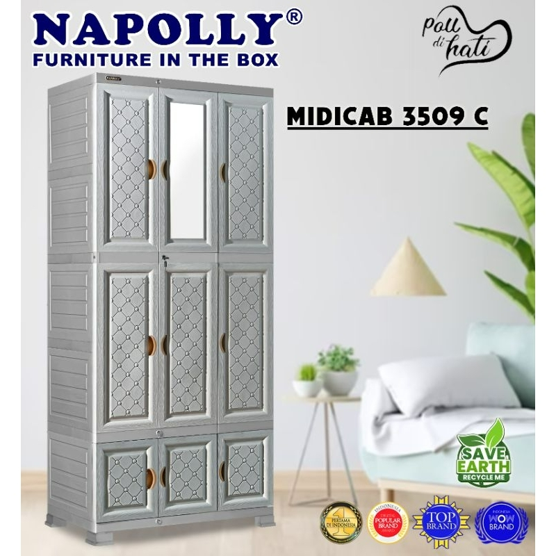 LEMARI PLASTIK NAPOLLY 5 PINTU SUSUN MIDICAB-3408 TEMPAT PENYIMPANAN PAKAIAN JUMBO KUNCI KACA KOKOH SERBAGUNA TERMURAH