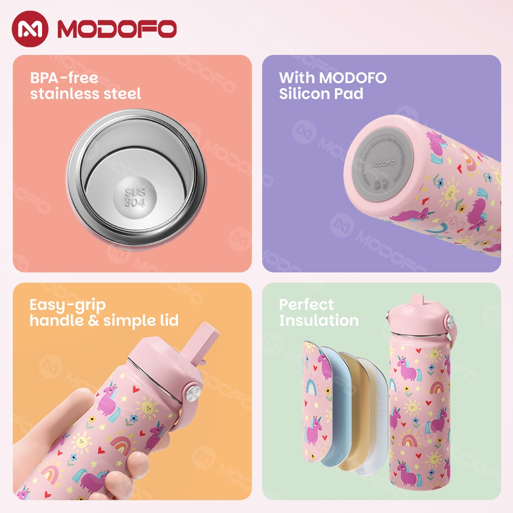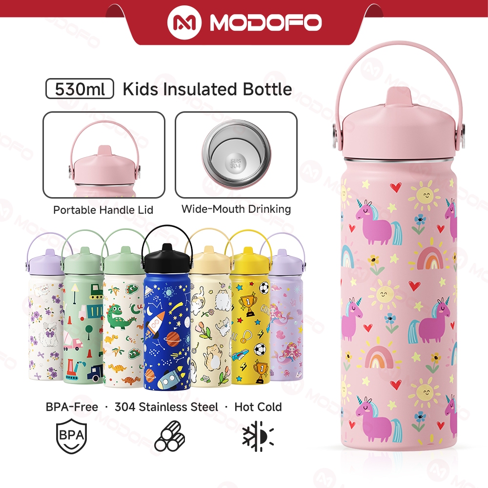 MODOFO Tumbler Anak 530ml/18oz Motif Kartun Lucu Baja Anti Karat - Tahan Panas/Dingin 24Jam
