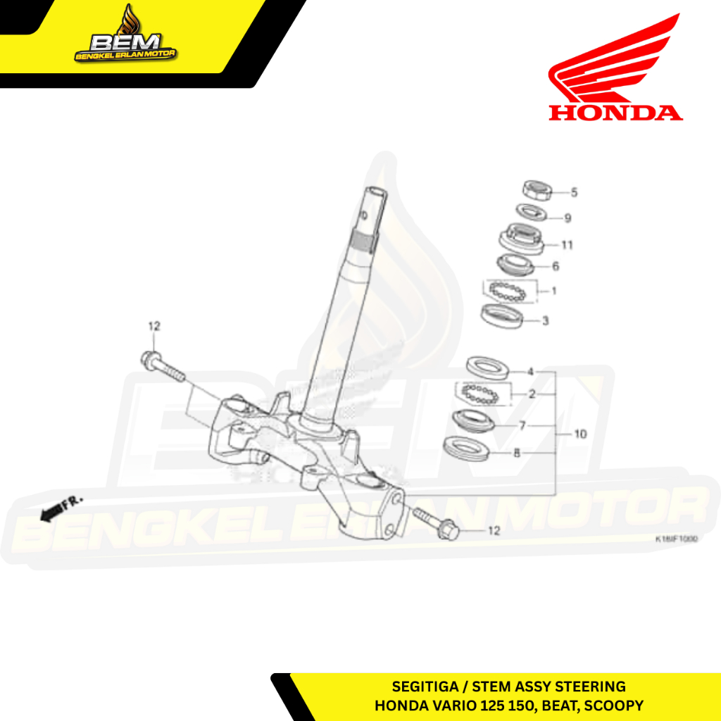 5320B-KZR-600 Stem Assy Steering (Segitiga Depan) – HONDA VARIO 125 150, BEAT, SCOOPY Original AHM