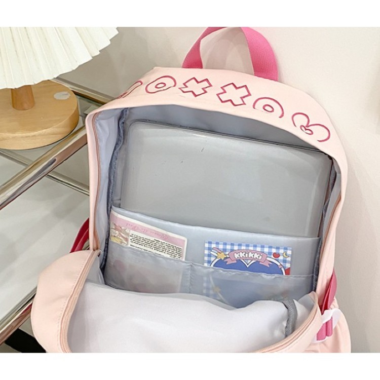 Tas Sekolah Anak Perempuan WnD DQ555 Free Gantungan Boneka Ransel Korean Style Bahan Nilon Backpack Wanita Polos Pastel