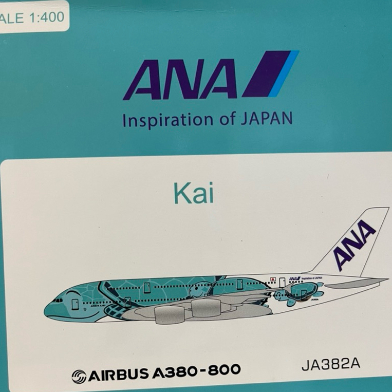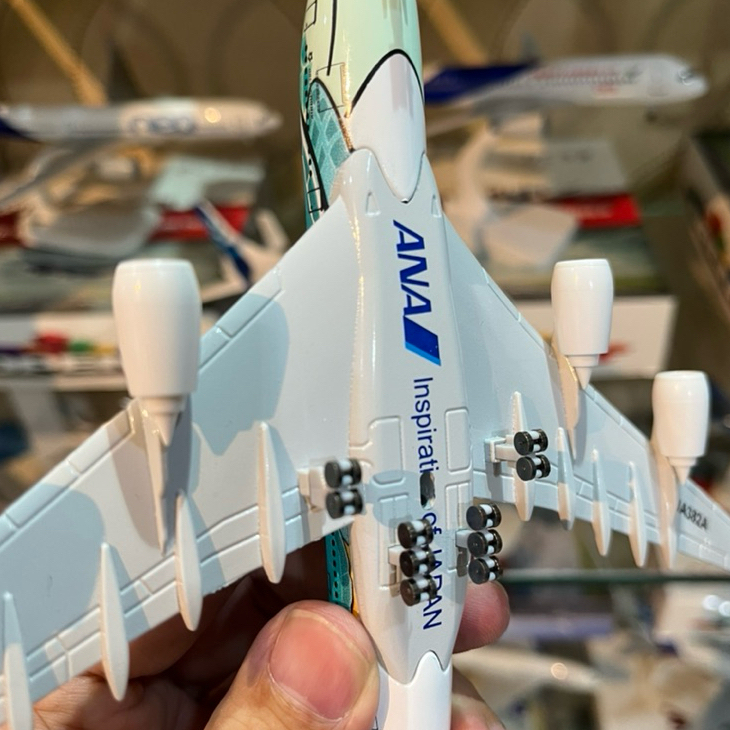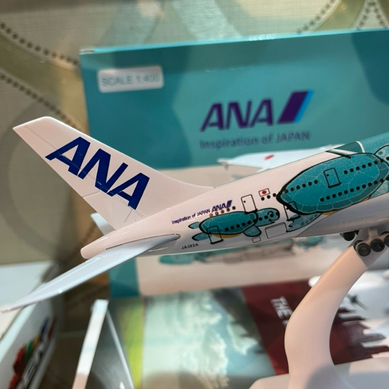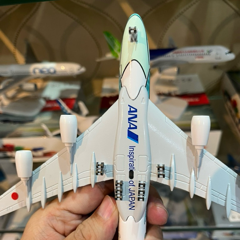 Miniatur Pesawat ANA hijau kura kura KAI A380 800 Panjang 20 cm ada roda ada dudikan skala 1:400