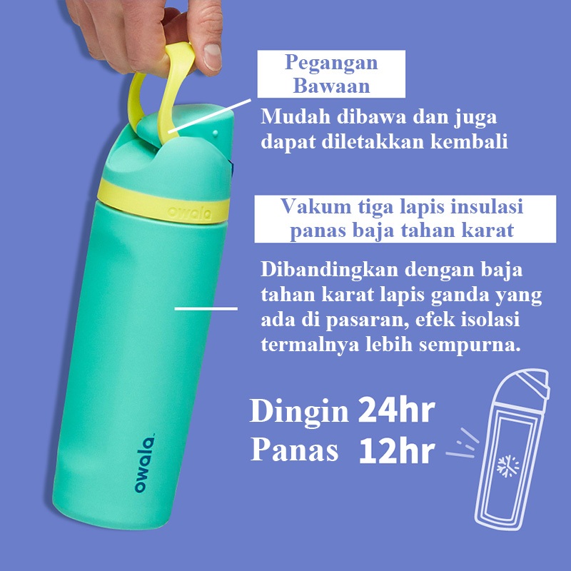 [Hot Seller] Owala FreeSip 24oz/32oz/40oz Insulated Stainless Steel Water Bottle /Gelas penyimpan es