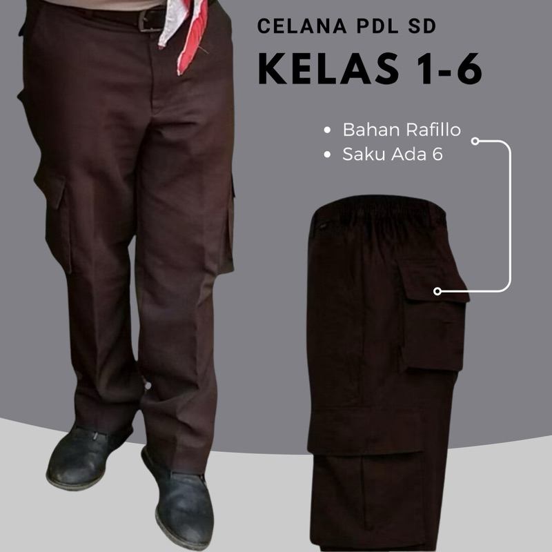 Seragam Sekolah - Celana Pramuka PDL Cargo Saku 6 SD Karet Pinggang