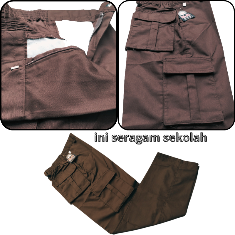 Seragam Sekolah Celana Pramuka PDL Kempol Cargo saku 6 SD Panjang Pinggang Karet Ini Seragam Sekolah