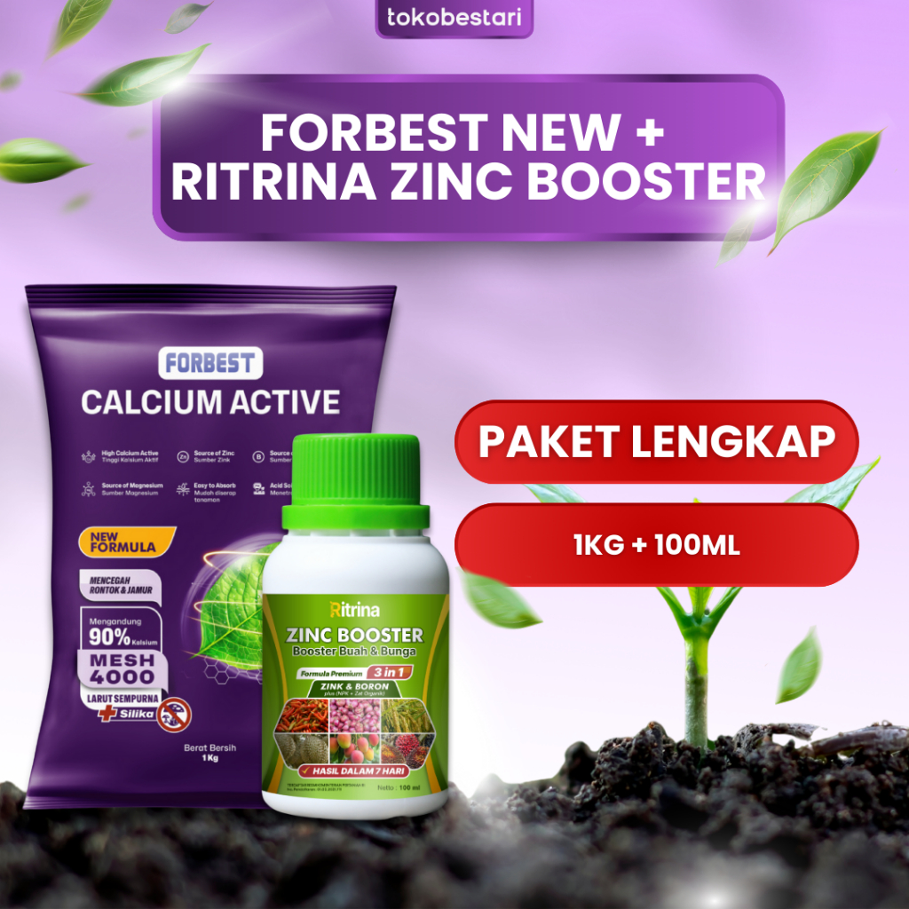 Paket Pupuk Lengkap Forbest New & Ritrina Zinc Booster - Solusi Anti Rontok, Busuk Buah, Jamur, Daun Kuning & Keriting, Booster Pelebat