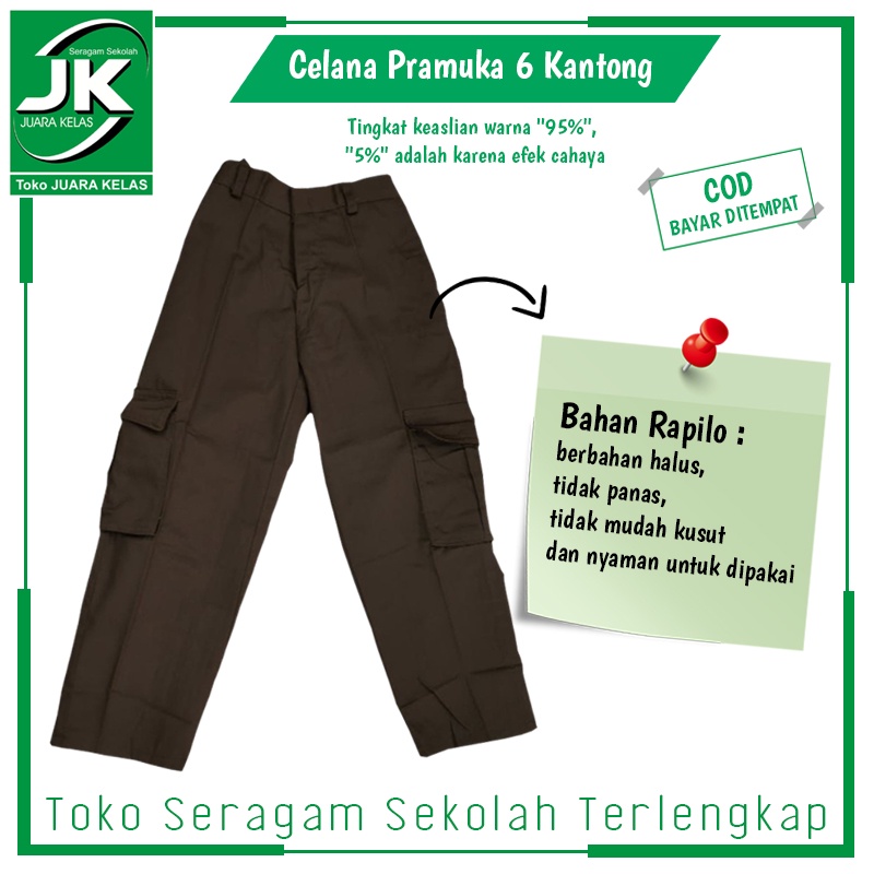 [JK] PERINTIS Celana Pramuka Kantong 6 Karet Bahan Rapilo Celana Pramuka SD-SMP-SMA - Seragam Pramuka Rapilo