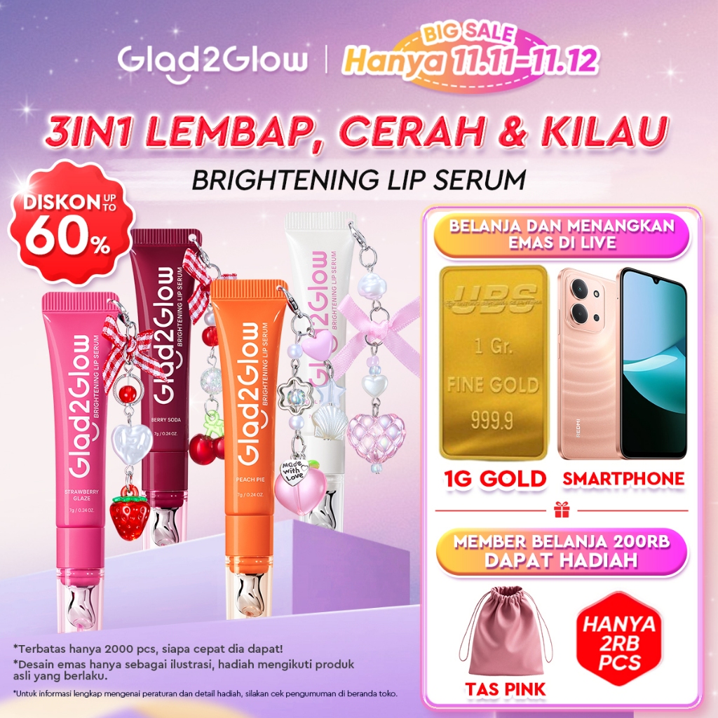 Glad2Glow BRIGHTENING LIP SERUM 7g Mencerahkan Melembabkan dan menambahkan warna3in1 liptint lipstick lipcream