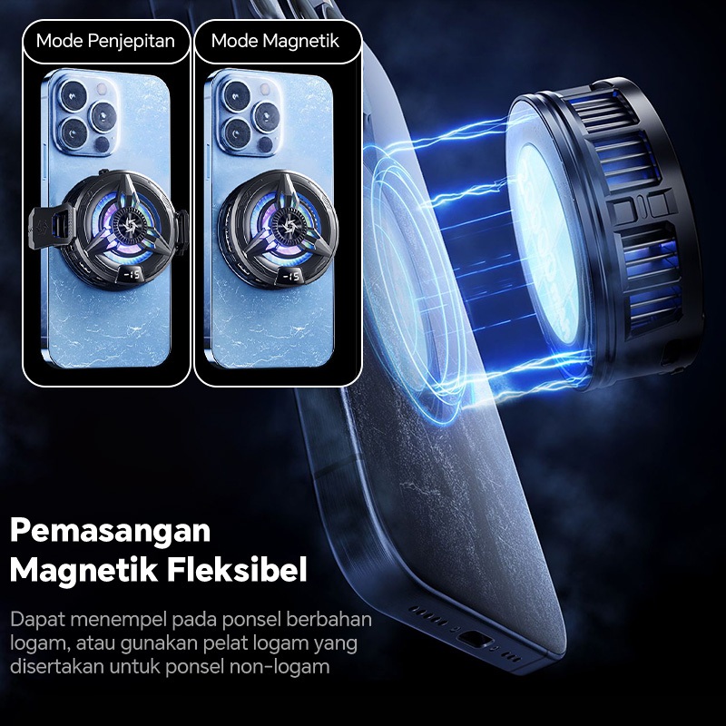 Fan Cooler Hp Gaming Kipas Pendingin Hp Cooling Pad Bisu Lampu Rgb Tampilan Led (Free 2 Klip + Stiker Magnetik)