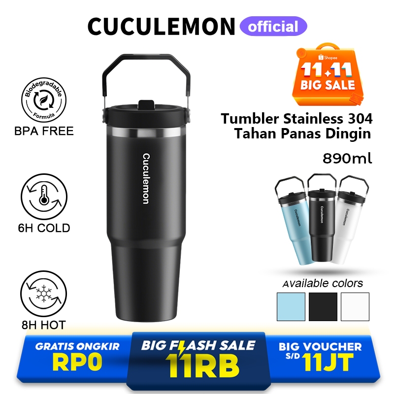 CucuLemon Tumbler Stainless Vaccum 900ML Termos Tahan Panas Dingin Kopi Botol Minum Portable Bottles