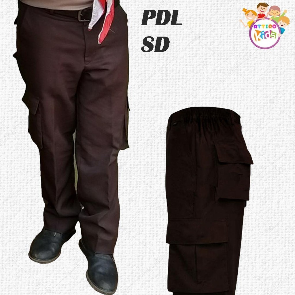 Seragam Sekolah - Celana Pramuka Anak Laki Laki PDL Cargo Saku 6 SD Bahan Rafilo Karet Pinggang