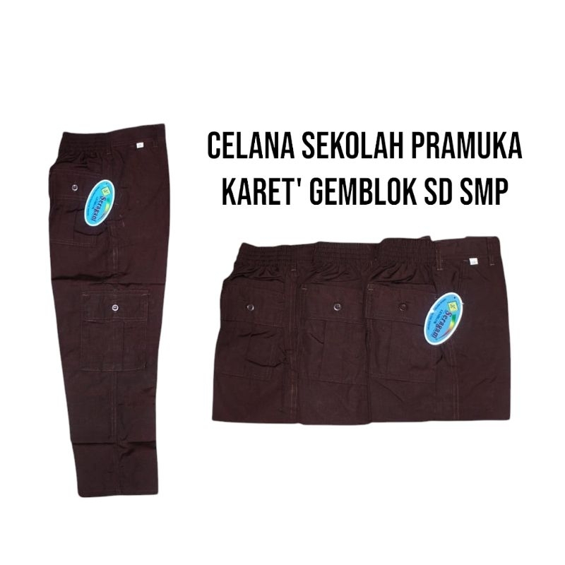 Seragam Celana Panjang Gemblok pinggang Karet Pramuka Coklat / Kantong banyak ada 6 / celana PDL cargo Pramuka SD MI SMP MTS