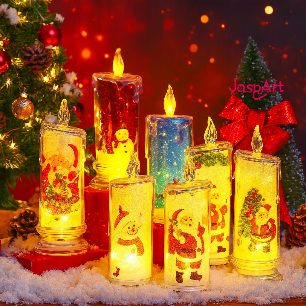 Lampu Natal LED Akrilik Lilin LED Elektrik Lilin Hiasan Natal Lucu Lampu santa snowman Tinggi 18cm