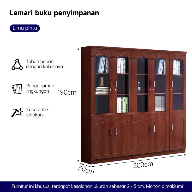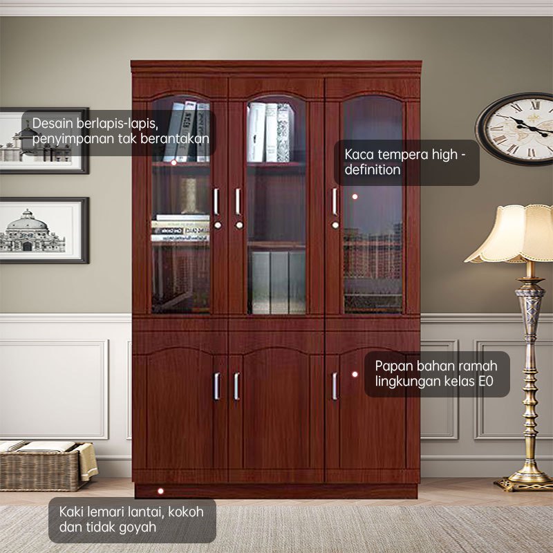 Rak Buku/Rak Display/Rak Serbaguna/Lemari Arsip Kantor/Lemari Arsip Kaca Kayu Solid