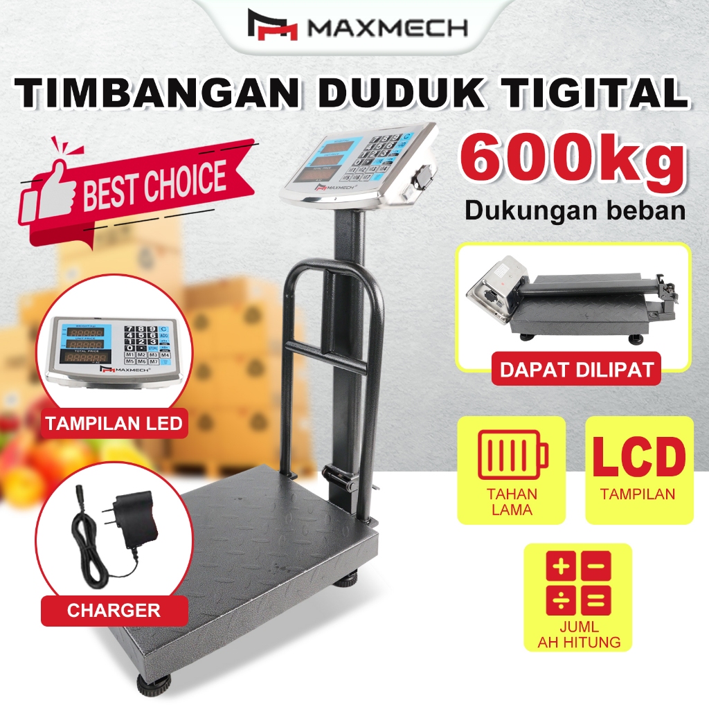 MaxMech Timbangan Duduk Digital 600 KG / Timbangan Barang / Timbangan Lantai 600 KG/Single Display Timbangan Duduk Digital 600 kg
