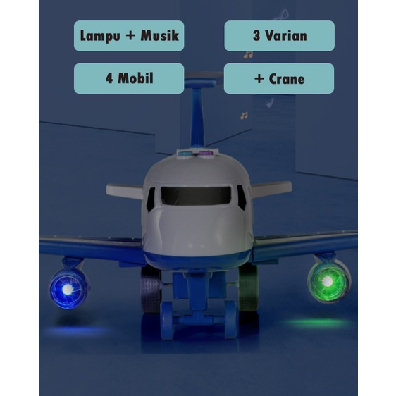 Mainan Pesawat Anak Crane + 3 mobil diecast ada lampu dan efek suara Helikopter Mobil Metal