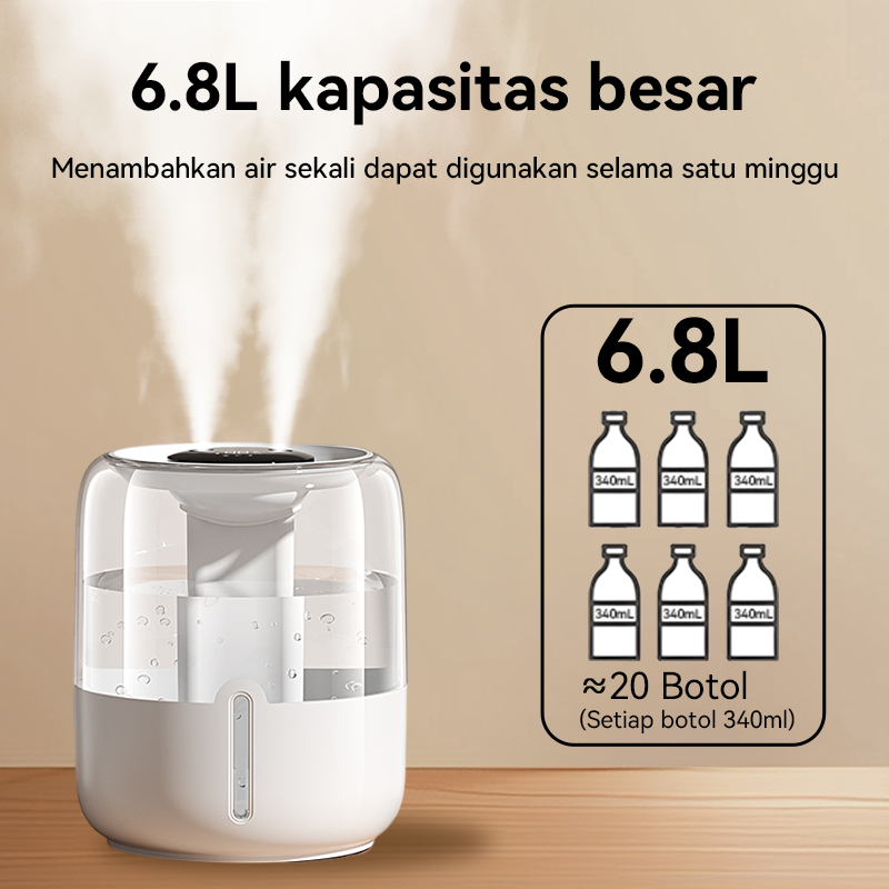 YIOMIO Humidifier 6.8L Ultrasonic - Air Purifier, Diffuser Aromaterapi, LED Night Light, Type-C, Dual Hole, 16dB Senyap, untuk Kamar Tidur