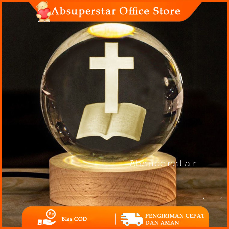 Bola Kristal Salib Bercahaya / Bola Kristal Yesus / Souvenir Acara Awam Gereja / Hadiah Ulang Tahun / Dekorasi Desktop Kantor / Lampu Tidur Salib Bunda Maria Tuhan Yesus / Glow Lamp