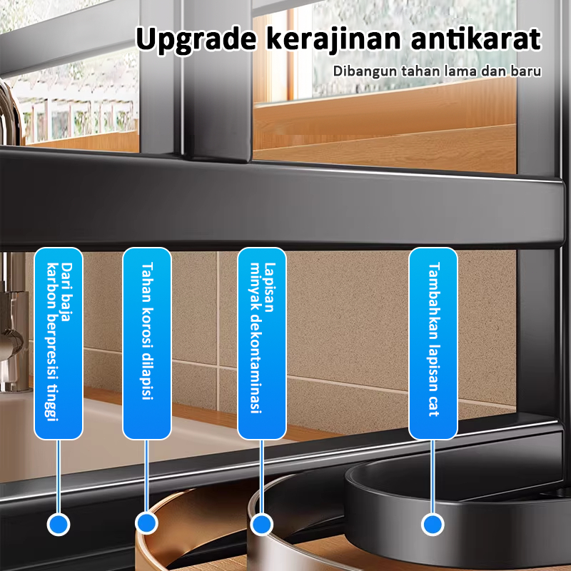 SUN Rak Piring Wastafel Dapur Stainless Steel Multi-fungsi Dengan Penutup