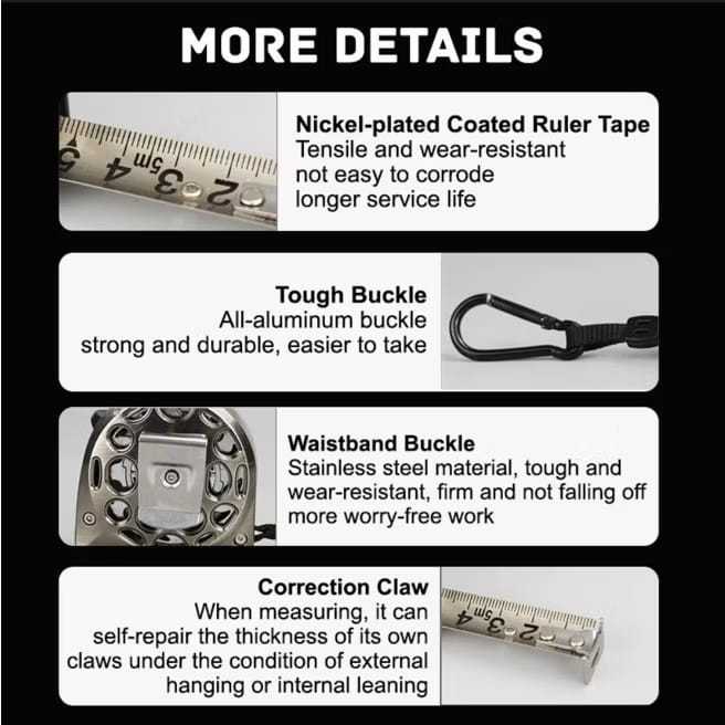 SAKUTO Alat Ukur Meteran Roll 3m/5m/7.5m Panjang Stainless Tebal/Meteran Pengukur Kelas Industri Presisi Tinggi/Alat Ukur Meteran