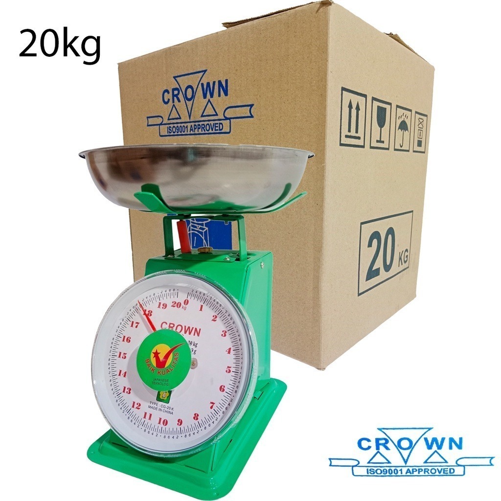 Timbangan Crown TERMURAH Timbangan Jarum Stainless Steel 5/10/15/20kg - Untuk Dagang Buah, Laundry & Daging (Warna Hitam/Hijau)