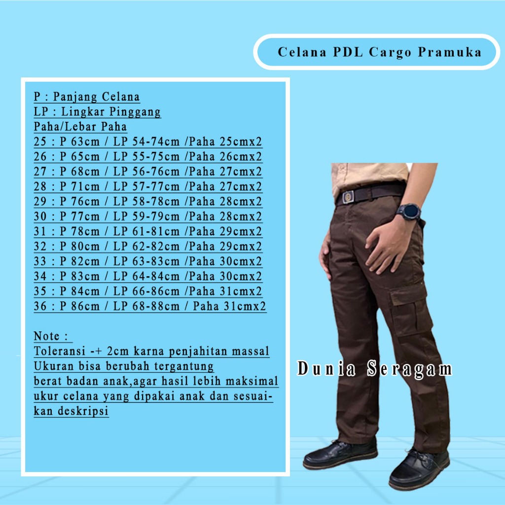 Seragam Sekolah Celana PDL Cargo Pramuka Celana Coklat Pinggang Karet Sekolah SD Madrasah Bahan Katun Twill By Dunia Seragam