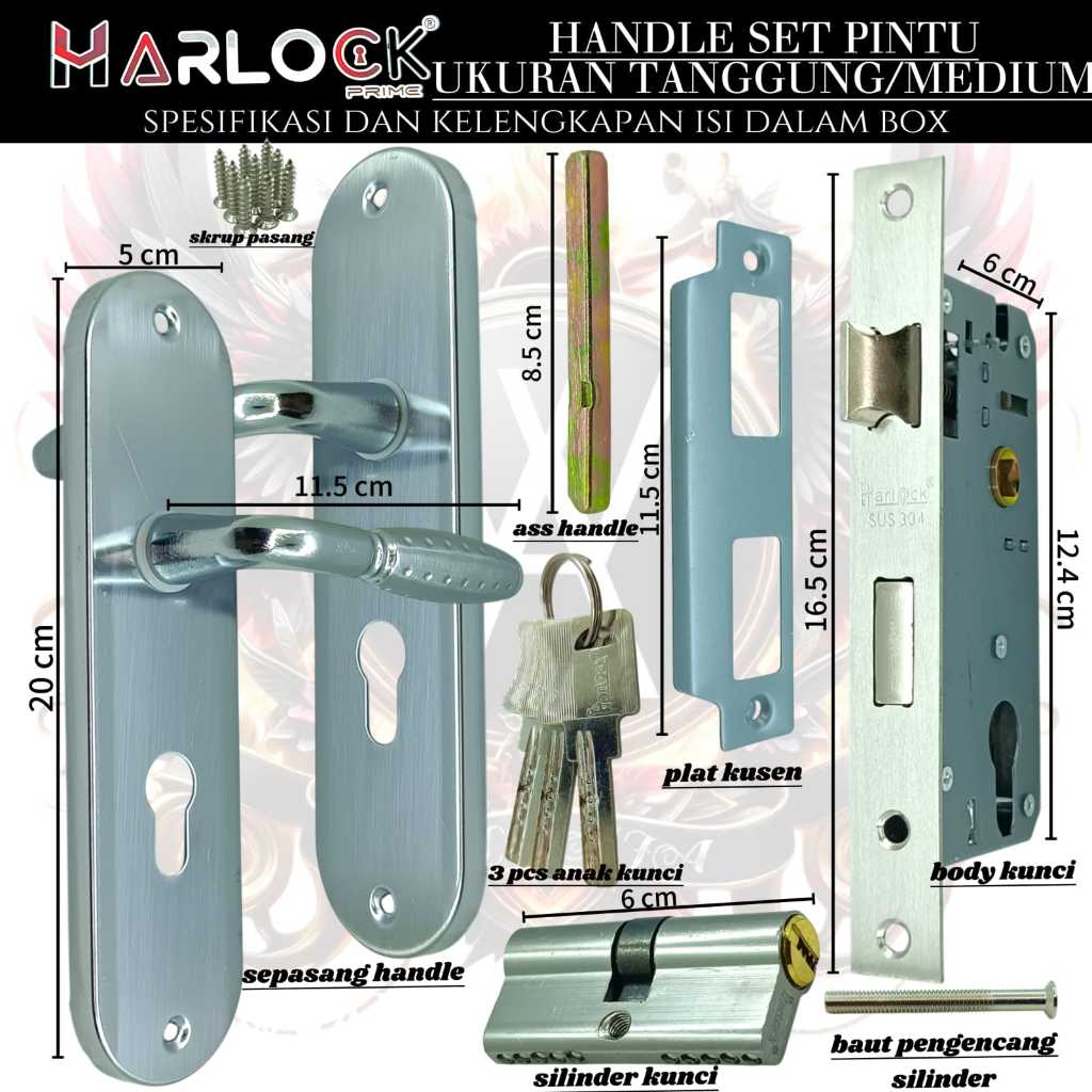 HARLOCK kunci pintu kecil / kunci pintu tanggung / kunci pintu besar handle pintu 1 set lengkap