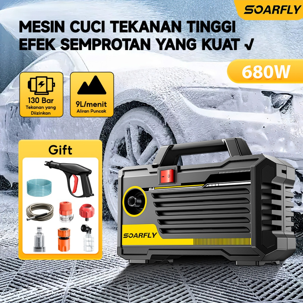 SOARFLY High Pressure Washer Mesin Cuci Tekanan Tinggi 680W Alat Cuci Mobil Alat Steam Cuci Motor & Mobil Mesin Cuci Mobil Tekanan Tinggi
