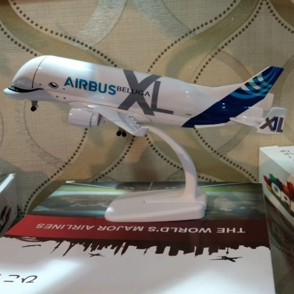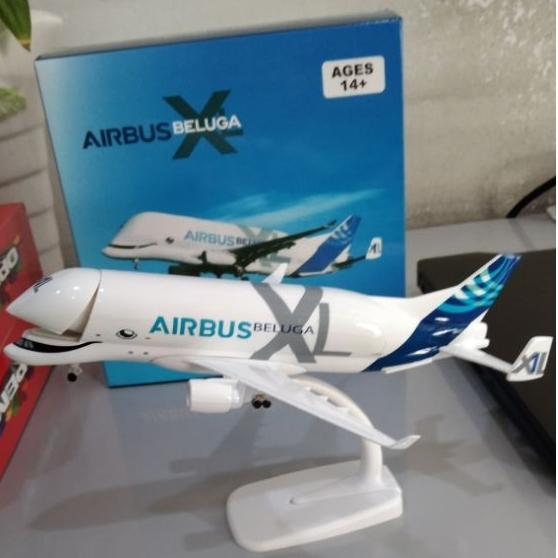 miniatur Diecast pesawat Beluga XL panjang 20 cm bahan full besi ada roda ada dudukan