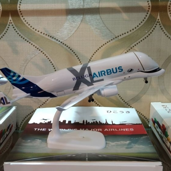 miniatur Diecast pesawat Beluga XL panjang 20 cm bahan full besi ada roda ada dudukan