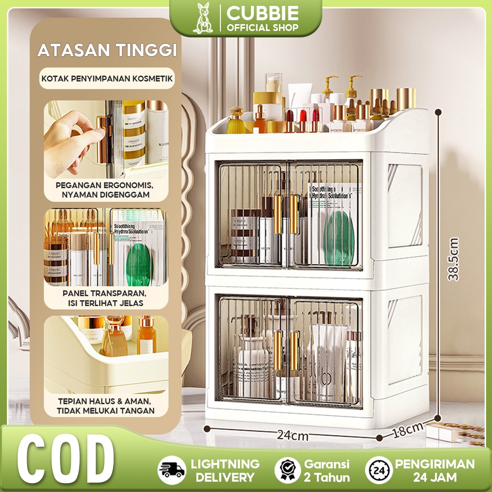 Cubbie Rak Meja Kosmetik Premium Rak Organizer Make Up Pintu Sliding Box Storage Makeup Akrilik Transparan