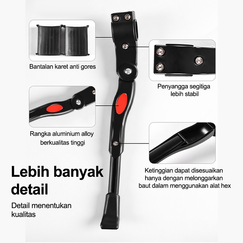 Standar Samping Sepeda ung Standar, Panjang Dapat Disetel, Material Aluminium Paduan, Cocok untuk MTB & Sepeda Balap, Ki