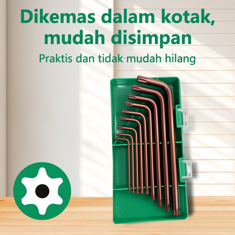 ISKU Kunci Bintang Hex Set Bengkel Mobil Motor 9PCS Baja Kuat Tahan Lama S2 Steel Garansi 1 Tahun
