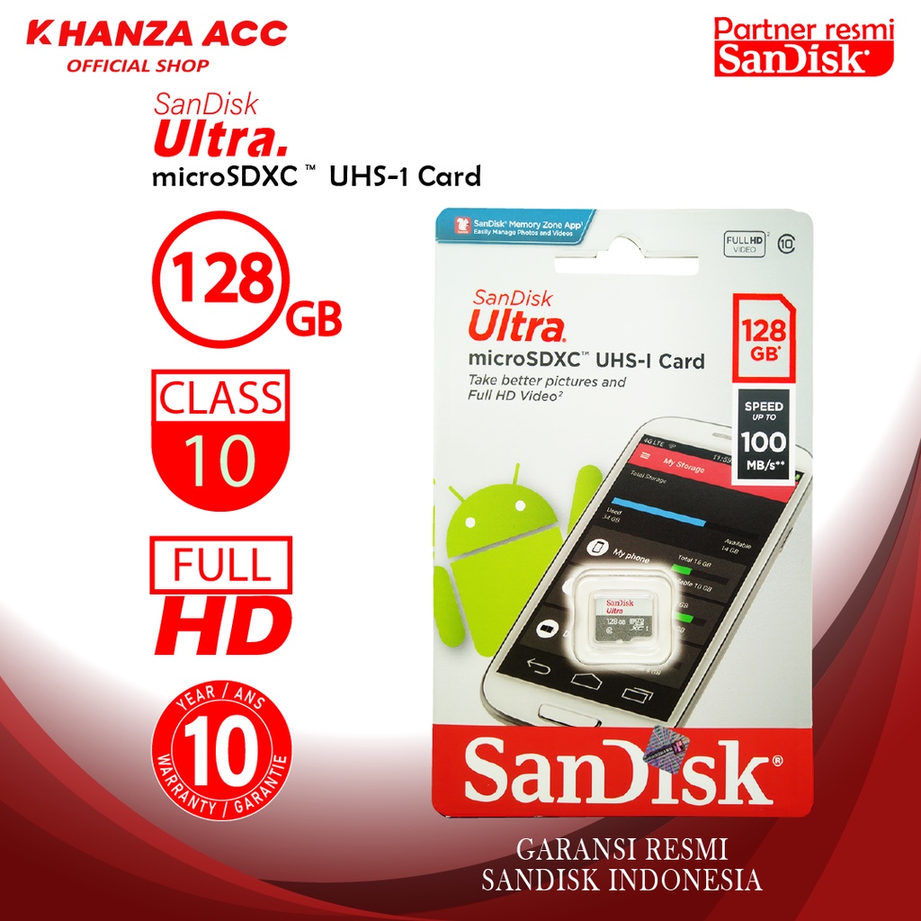 Khanzaacc Promo Exlusive Memori Hp 32Gb 64Gb 128Gb Micro Sd Sandisk Class 10 Ori Bergaransi Resmi