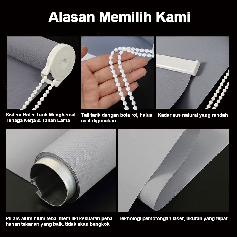 Roller Blind Blackout 100 PERSEN Dengan Rel Kepala - Tirai Gulung Premium Anti UV & Pengatur Cahaya, Material Tebal Tahan Air, Anti Noda & Gores
