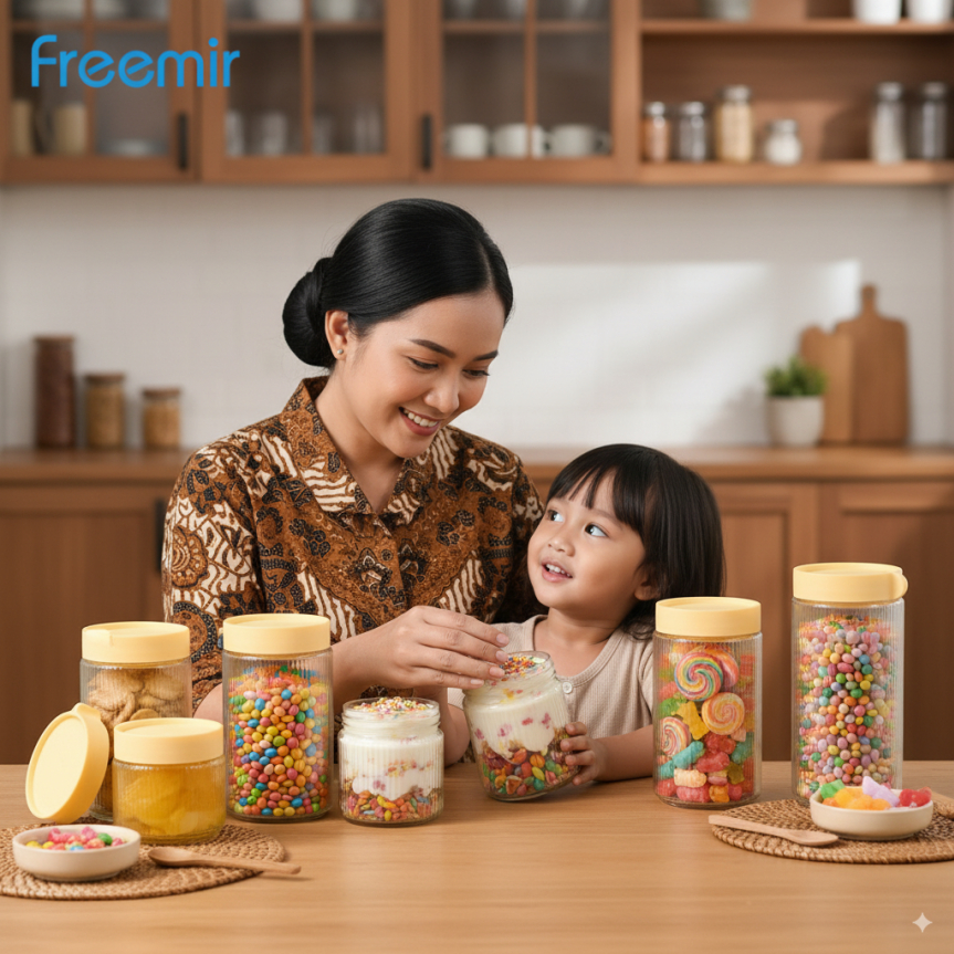 freemir Toples Kaca Mpasi Penyimpanan Makanan Kedap Udara untuk Dapur Rumah toples transparan toples kedap udara