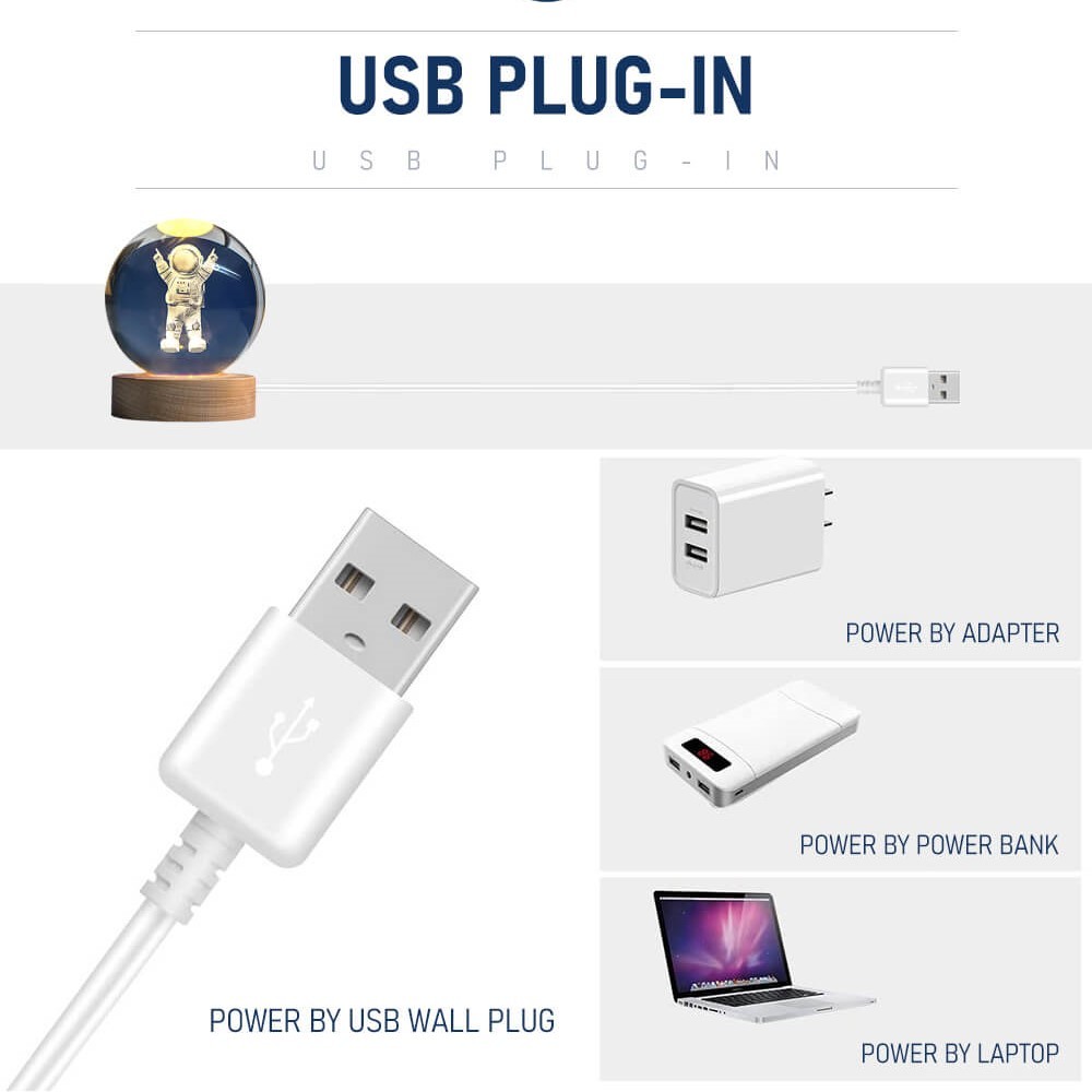 Lampu Tidur Bola Kristal 3D Warm White USB 3W Moon