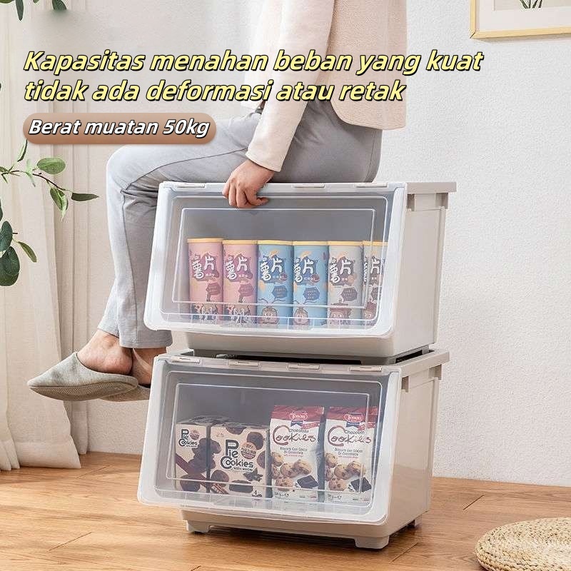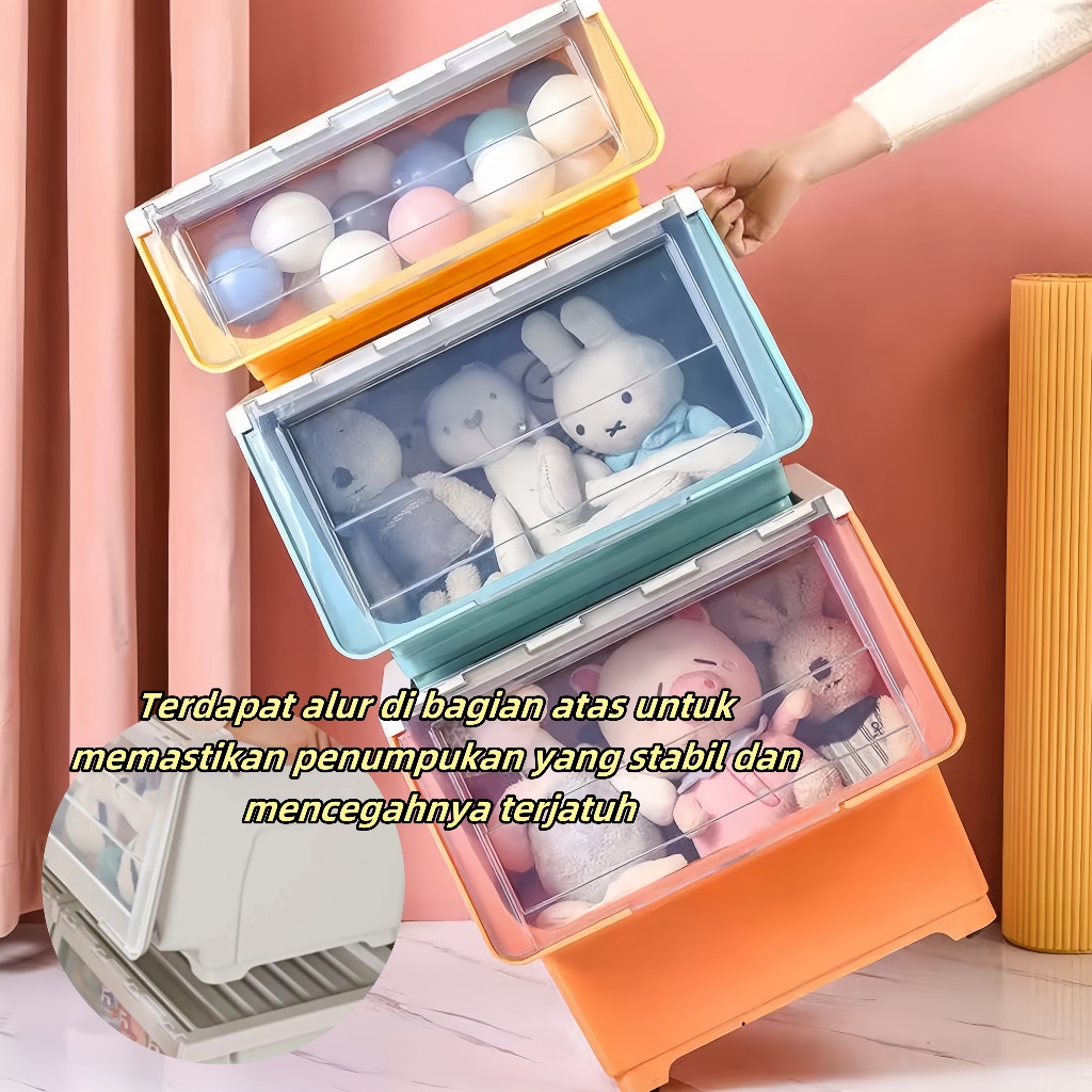 Kotak Penyimpanan Plastik Transparan Besar Double Open/Buka Depan Untuk Mainan Anak, Buku, Pakaian - Multifungsi Anti Lembab