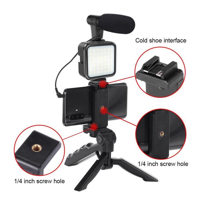 SUPER HEMAT ! VIDEO MAKING KIT AY-49 DAN MIKROFON + LAMPU LED / VLOGGING KIT / TRIPOD VLOG VIDEO REMOTE - HITAM MURAH