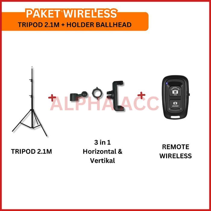 SUPER HEMAT ! TRIPOD 2 METER WIRELESS BLUETOOTH HOLDER BALLHEAD HP HORIZONTAL VERTIKAL 360 MULTIFUNGSI ALPHA ACC MURAH