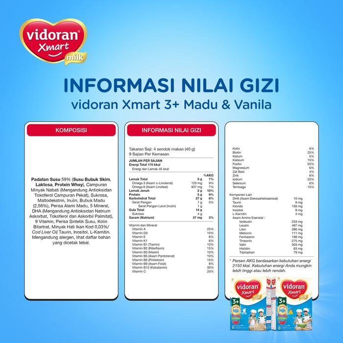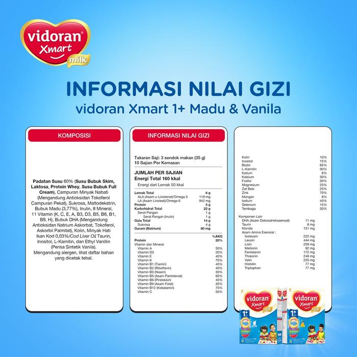 Terlaris VIDORAN XMART 1+ 3+ IMUNUP VANILA MADU 925gr SUSU FORMULA - 1+ VANILA 925 gr Elegan