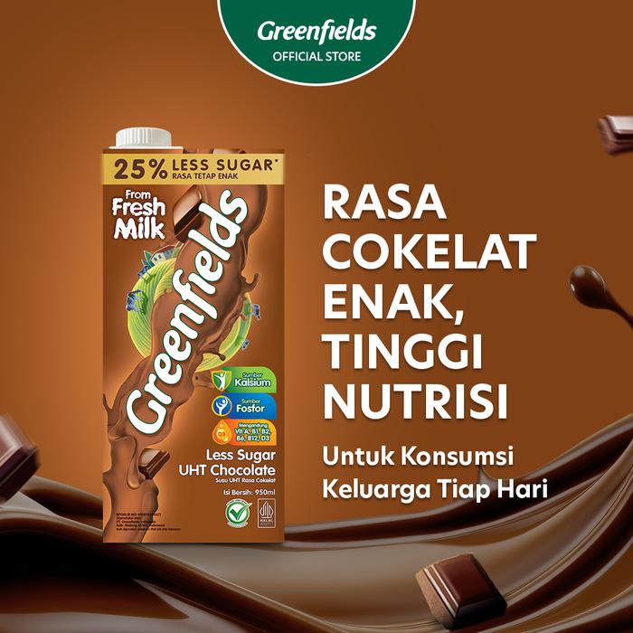 Terlaris [LEBIH HEMAT] Susu Greenfields UHT Chocolate Less Sugar 950ml x 12 pcs (1 Karton) Elegan