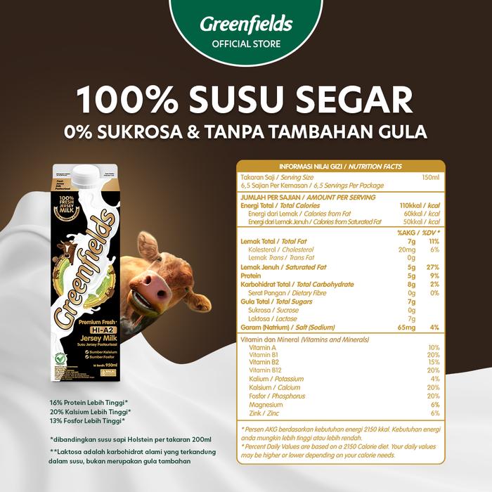 Murah [Triplepack] Susu Segar Greenfields - Premium Jersey Milk 950ml x 3pcs Elegan