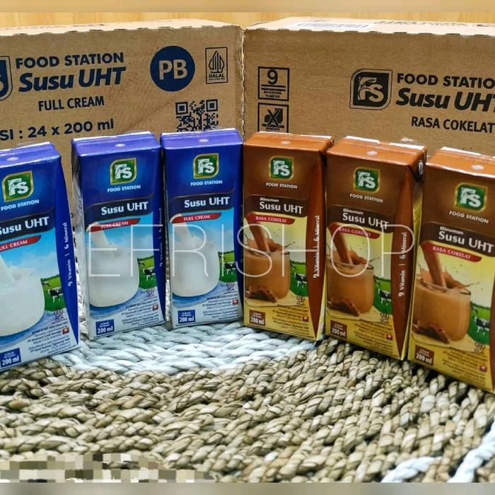 Terlaris SUSU UHT FS FOOD STATION 200ML RASA COKLAT dan FULL CREAM ISI 24 PCS - COKLAT Elegan