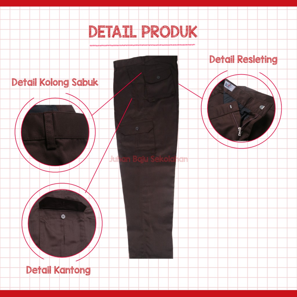 Celana PDL Pramuka Celana Pramuka SMP Celana PDL Pramuka SMA Celana PDL Pembina Celana Pramuka Pembina Celana Cargo Panjang Celana PDL Panjang Celana Sekolah Celana Lapangan Pramuka