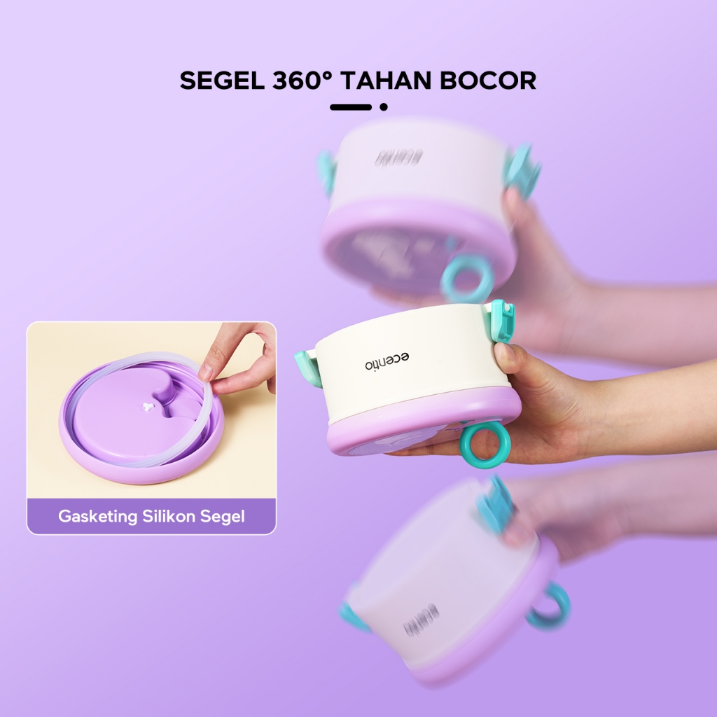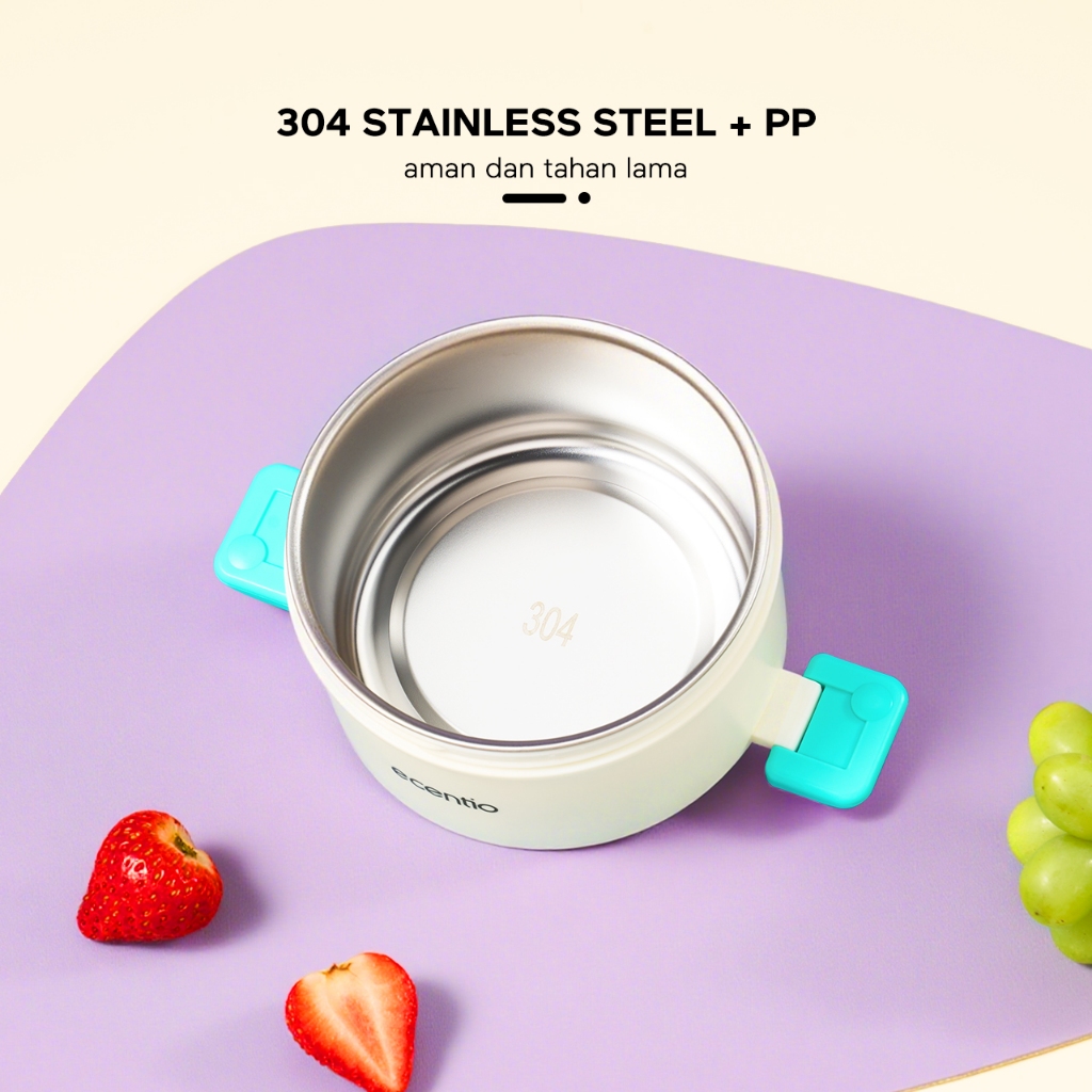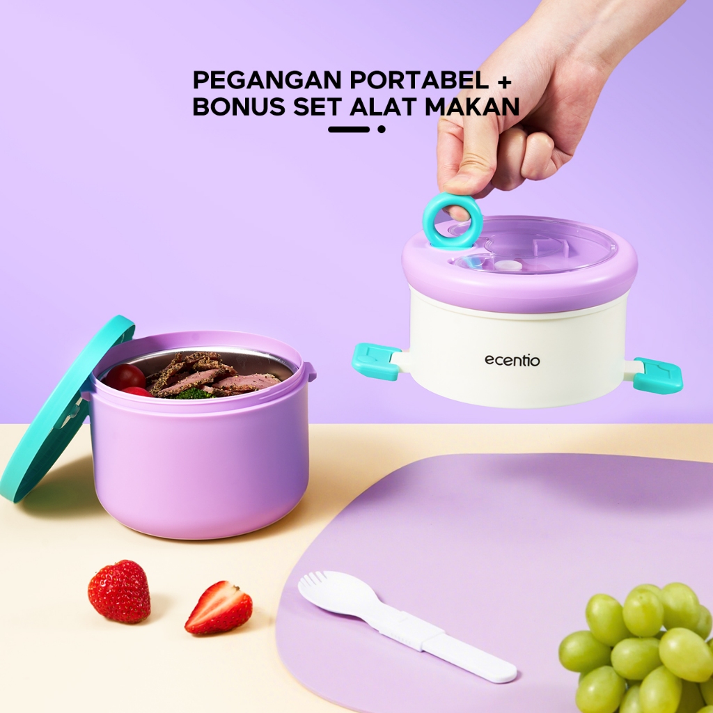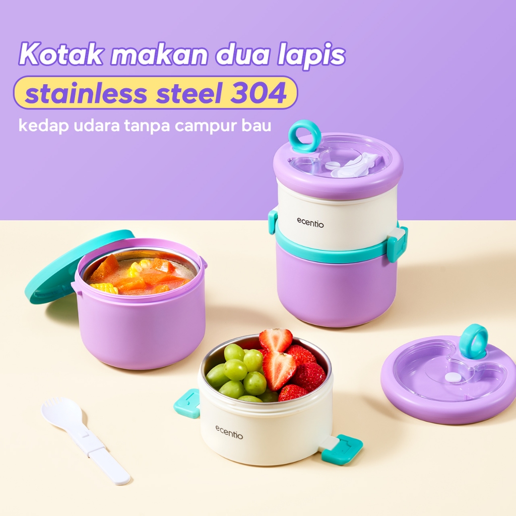 ecentio Kotak bekal stainless steel Double layer 730+550ml lunch box Tahan bocor Anti campur rasa Wadah makan Bento Besar
